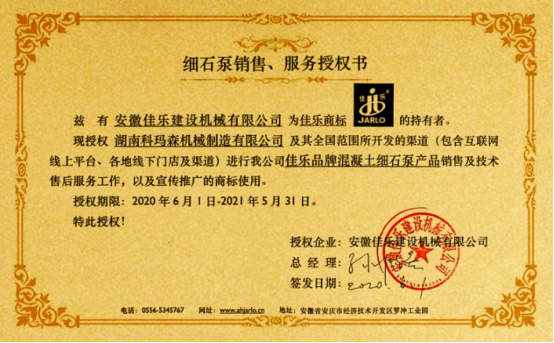 科瑪森細(xì)石泵是佳樂細(xì)石泵的唯一指定授權(quán)代合作伙伴,您的稱贊就是對我們最大的認(rèn)可,您的信任就是我們成長路上最大的支持。做中國好細(xì)石泵,科瑪森是專業(yè)的!
