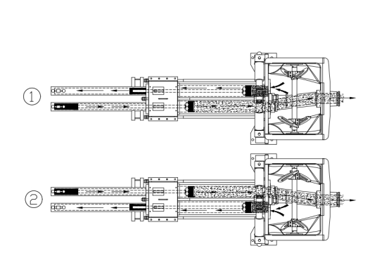 而能滿足這個(gè)首要需求的技術(shù),就是細(xì)石泵的靈魂部件---泵送機(jī)構(gòu)。它是混凝土細(xì)石泵的重要執(zhí)行機(jī)構(gòu),是技術(shù)核心,通過輸送缸與料斗的連接,在主油缸的作用力推動下進(jìn)行吸料,然后再將料斗內(nèi)混凝土通過S管推送到指定部位,完成物料輸送的工作??此坪唵危瑢?shí)際上技術(shù)不一,效果也千差萬別。