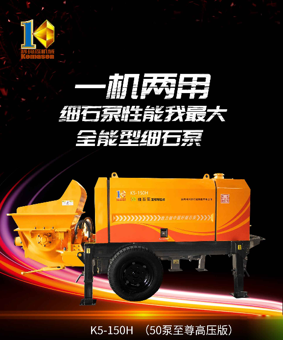湖南科瑪森品牌就是一家專注技術(shù)為主,科技創(chuàng)新發(fā)展企業(yè),其液壓、機電、機械制造技術(shù)在隧道領(lǐng)域混泥土泵送噴射機械2016-3015/3016系列歷經(jīng)500套應(yīng)用,技術(shù)非常成熟可靠,科瑪森制造細石泵有著多項技術(shù)行業(yè)靠前,克服液壓系統(tǒng)卡閥、油溫高其他細石泵老毛病。K5-150H(50型細石泵至尊版)一小時理論泵送40方,比其他的品牌細石泵泵送放量大,每天經(jīng)濟效益收入快人一步,另可泵送10-35mm大顆粒石子,產(chǎn)品性能卓越,壽命長優(yōu)點。