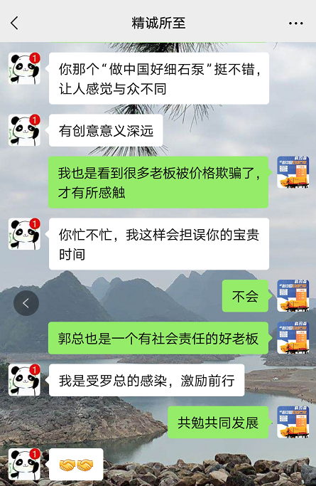 相遇在網(wǎng)絡(luò),相識(shí)在科瑪森;相知相惜無悔信任科瑪森!這應(yīng)該是對(duì)郭總跟科瑪森之間最好的總結(jié)了。2020年六月初,郭總從網(wǎng)絡(luò)上了解到科瑪森,從這時(shí)候起郭總就一直在默默的關(guān)注科瑪森的消息,因?yàn)橹氨荒承┑貐^(qū)的低端細(xì)石泵禍害的不淺,所以導(dǎo)致一開始郭總并不敢冒然聯(lián)系科瑪森的銷售人員,就這樣一直觀望。