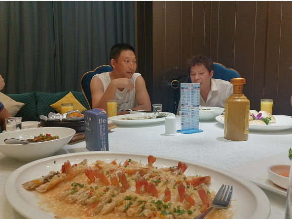 當(dāng)晚冉總跟公司羅總及技術(shù)團(tuán)隊(duì)一起晚餐,并祝賀項(xiàng)目首次47層高130多米泵送順利圓滿成功!